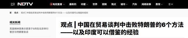 在印度一些人眼中,中美之前的关税战谁胜谁负,已经一目了然,美印谈判正值关键时刻,他们主动总结了中国用来对付美国的6招,认为莫迪政府可以借鉴这些成功经验,在面对美国时取得一定的主动权。