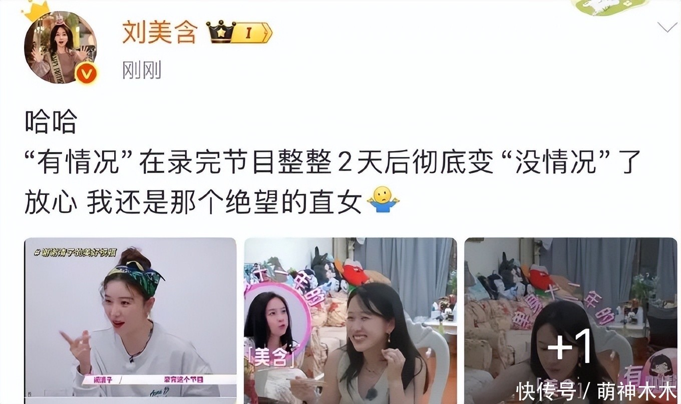 刘美含曾在节目中称恋爱不一定要心动,合适就行,所以与多年好友恋爱并不奇怪,但如今这结局不知会不会后悔。